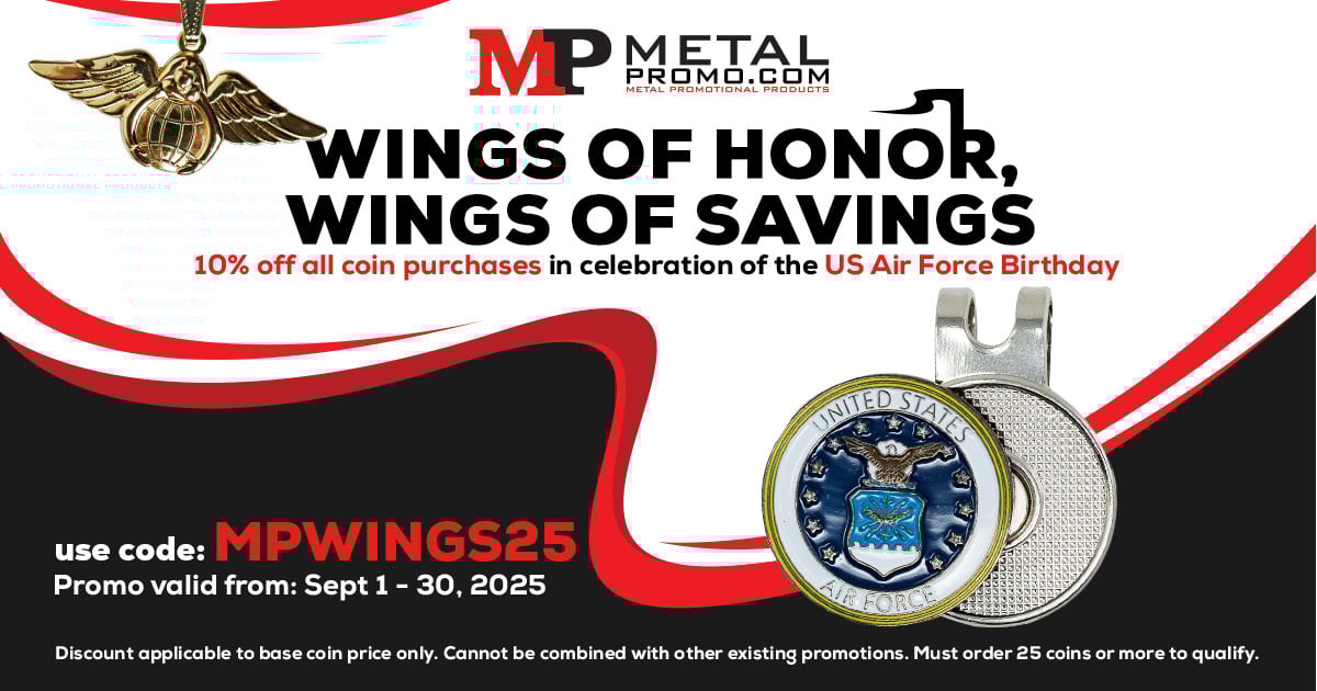 This April, order 200 or more challenge coins, and GET A FREE EDGE UPGRADE; or order 300 or more lapel pins, and GET 30% OFF on our Premium Enamel Upgrade. Simply use the code MPAPRIL24 on our quote form to apply!